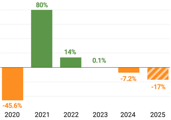 After three consecutive years of recorded growth, these are the first declines since the COVID-19 pandemic.